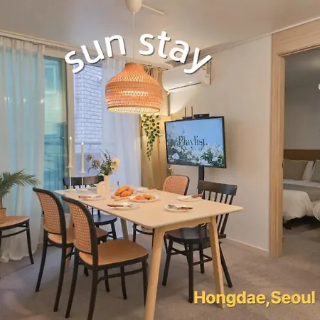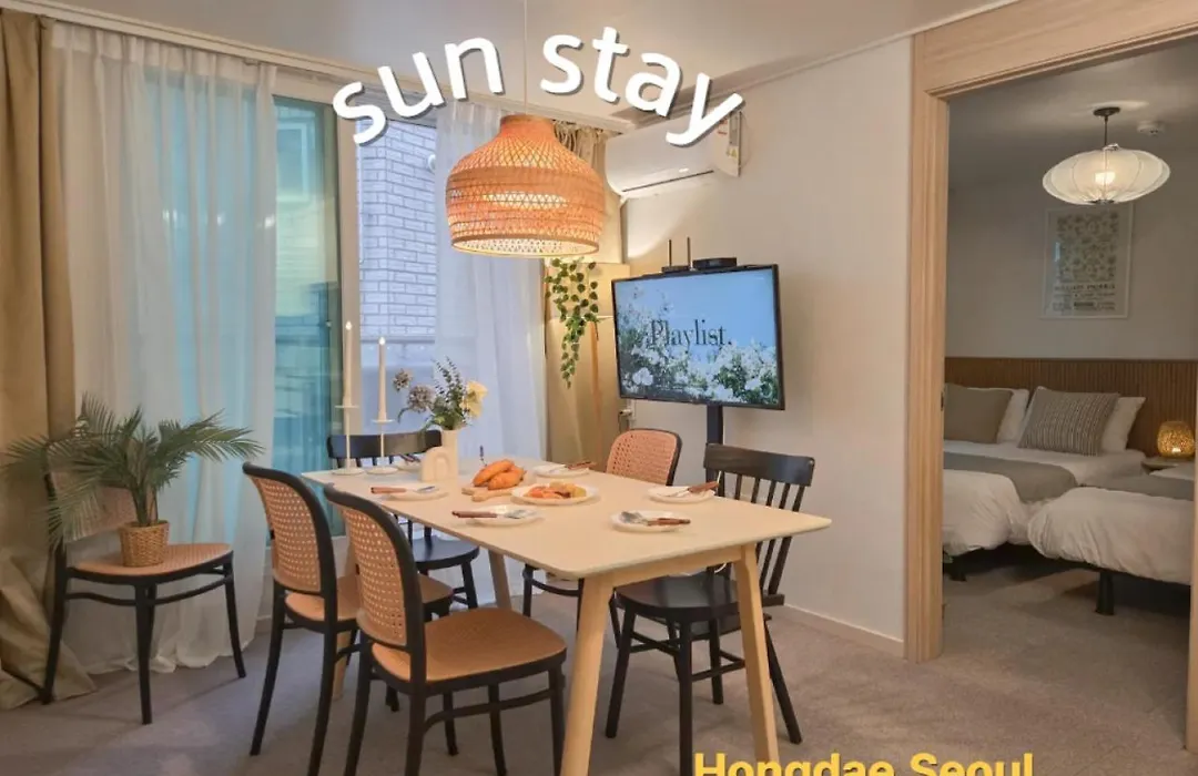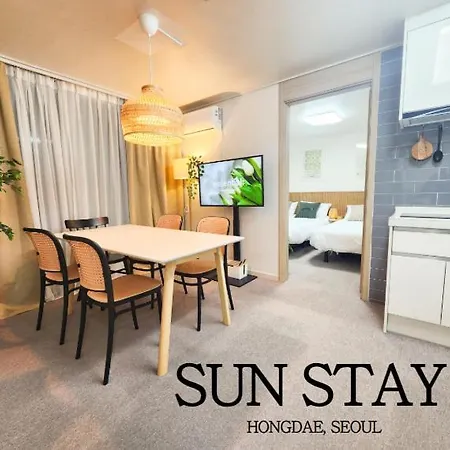 Located merely a 6-minute walk from the painting gallery "Trickeye Museum Seoul" and the Hongik Park, the 33 m² Sun Stay, Hongdae Seoul apartment features views of the street. Wi-Fi is available for guests' business or leisure needs.