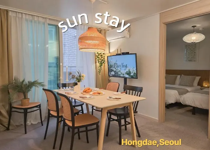 33m²のSun Stay, Hongdae ソウル特別市アパートはソウル トリックアイ美術館とKt&g サンサンマダンから徒歩でわずか6分に位置し、街路の景色を望めます。 ビジネスとレジャーの両方の目的でWiFiを利用できます。